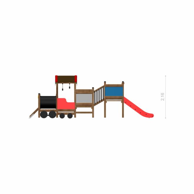 Locomotive w/ Tower and Slide train playhouse - Elölnézet