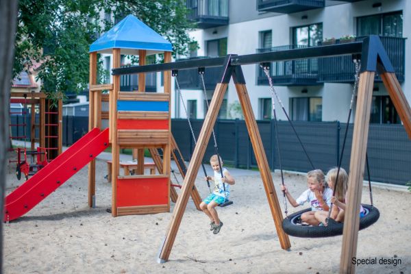 Bemutatjuk a Bird Nest Swing with Tower (BNS 90 cm) játszóházat csúszdával, amely a Pioneer vonal része, és sokféle funkciót és esztétikát ötvöz. Ez egy átfogó megoldás szabadidős terekhez, ahol a fészekhinta és a fából készült csúszda felejthetetlen kalandot kínál a legkisebbeknek. Többfunkciós játékeszközként épült, és egyetlen játszótéren belül számos szórakozási lehetőséget kínál.