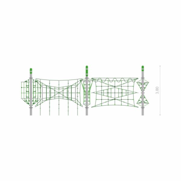 A Chinook a magas minőségű anyagok használatával tűnik ki, amelyek biztosítják a tartósságot és az időjárás-állóságot. A gondosan tervezett szerkezet tartós fém elemekből áll, amelyeket erős kötelek és hálók kötnek össze, lehetővé téve a fizikai aktivitás különböző formáit. A szerkezet még intenzív használat mellett is biztosítja a stabilitást.