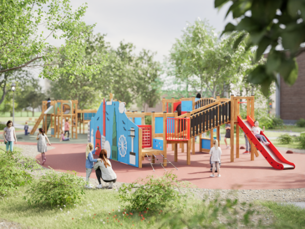 A City ideális választás közösségi játszóterekre, iskolákba és parkokba, ahol a gyerekek aktív mozgásra és kreatív játékra vágynak. A városi motívumokkal díszített elemek élénk és vonzó környezetet teremtenek, amely ösztönzi a szociális interakciót és a felfedezést.