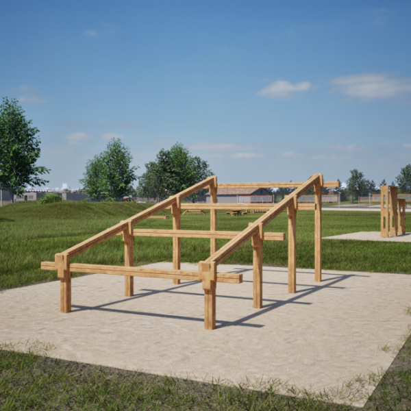 A fából készült akadálylétrá egy modern, fából készített eszköz, amely kihívást jelent minden aktív pihenést kedvelő személy számára. Játszótéri akadályként nemcsak szabadidős funkciót kínál, hanem elősegíti a mozgáskoordináció és egyensúly fejlesztését is. Ideális felszerelés rekreációs parkok és sportlétesítmények számára, ösztönözve az új kihívások vállalására.