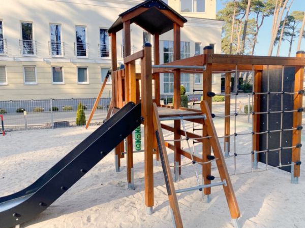 Climbing Kiosk Modern Nature fa játszóház csúszdával innovatív megoldás a játszóterek kategóriájában, amely nemcsak esztétikus megjelenést, hanem funkcionalitást is kínál. A Modern Nature vonal részeként tervezett projekt az építészeti nagyságával és a számos vonzó elemmel tűnik ki, amelyek aktív és biztonságos játékra ösztönöznek. Az integrált gyerekcsúszda e szerkezet központi eleme, izgalmas élményeket nyújtva a legfiatalabb felfedezőknek.