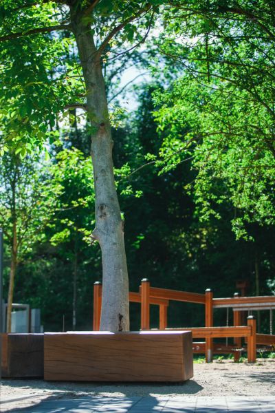 A Kocka parkpad nemcsak kiváló minőségű kivitelezésével tűnik ki, hanem sokoldalú alkalmazhatóságával is a különböző közterületeken. Ez a tölgyfa tartósság és a modern design ideális kombinációja, amely kiemeli a rekreációs terek természetes szépségét.