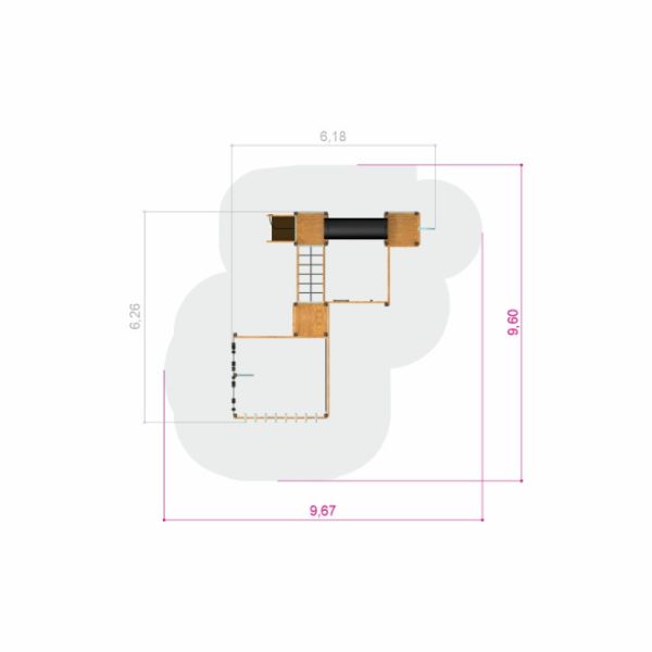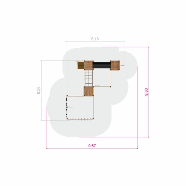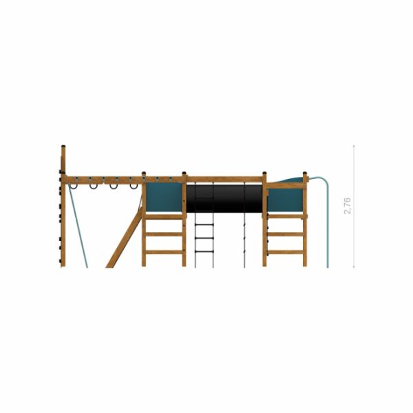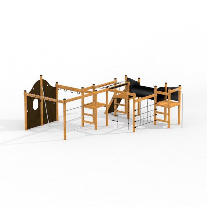 Ez a fából készült játszótér ideális megoldás olyan rekreációs területekre, mint a parkok vagy sportlétesítmények. Moduláris jellege lehetővé teszi számos különböző játékforgatókönyv létrehozását, a mászástól a csúszdákon át a hidakon keresztül. A gazdag motoros funkciókészlet lehetővé teszi az egyensúly, koordináció és erő fejlesztését a fiatal felhasználók számára.