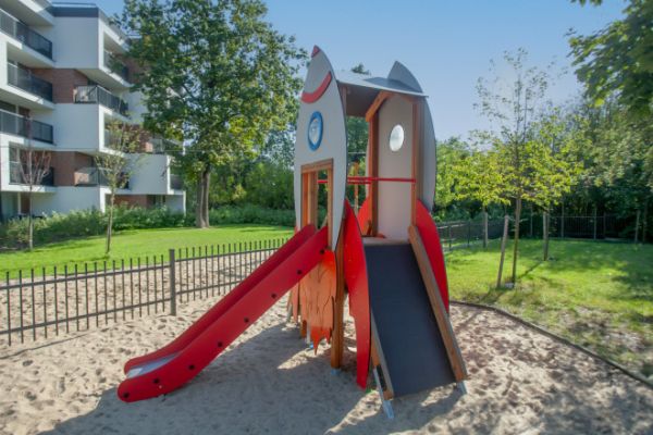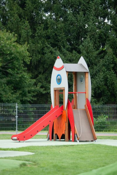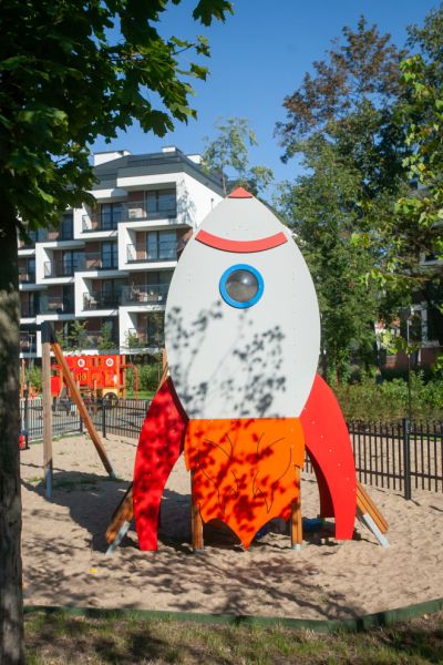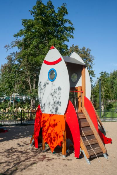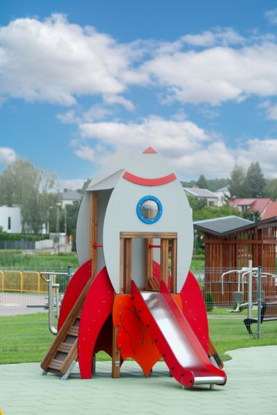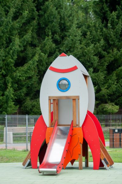 A Rakéta játszóház csúszdával kiválóan megfelel mind városi parkokban, mind rekreációs területeken vagy sportlétesítmények iskoláiban. A játszótér felszerelése ezzel az innovatív rakétával lehetőséget ad a gyermekek kreativitásának fejlesztésére a szabadban való aktív játék révén.