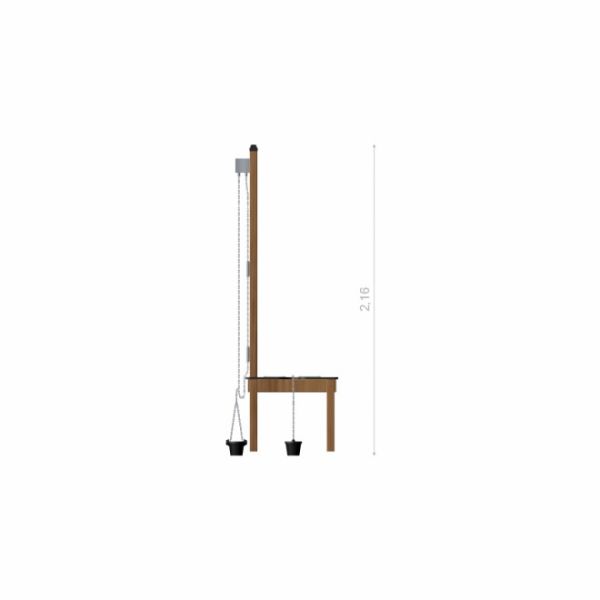 A Sand & Water Play Nature készlet a legmagasabb minőségű anyagok kombinációja. A szerkezet alapját az időjárásálló vörösfenyő fa képezi, amely tartósságot ötvöz a természetes szépséggel. A rozsdamentes acél elemek biztosítják a stabilitást és a biztonságot a használat során. A HDPE műanyag és gumialkatrészek tovább növelik a szerkezet funkcionalitását, ellenállóvá téve azt a gyermekek intenzív használatával szemben.