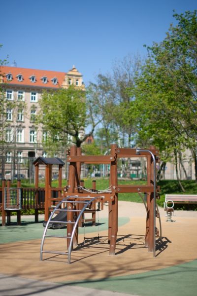 A Sherwood wooden playhouse egy különleges eleme a kis sport- és szabadidős infrastruktúrának, amely a gyerekeket a képzelet és kaland világába repíti. Robin Hood legendájából merítve ez a faházikó tökéletesen illeszkedik bármely játszótérhez, számos lehetőséget kínálva az aktív időtöltéshez. Konstrukciója révén ideális hely a kreativitás fejlesztésére és a mászásra.