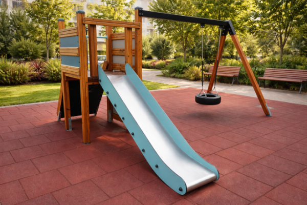 A Single Swing with Tower single slide szerkezete biztosítja a stabilitást és az ellenállást a mechanikai sérülésekkel szemben, miközben megfelel a játszótéri infrastruktúra legmagasabb biztonsági követelményeinek. A szilárd kivitelezés biztosítja a hosszú távú használatot, funkcióvesztés nélkül.