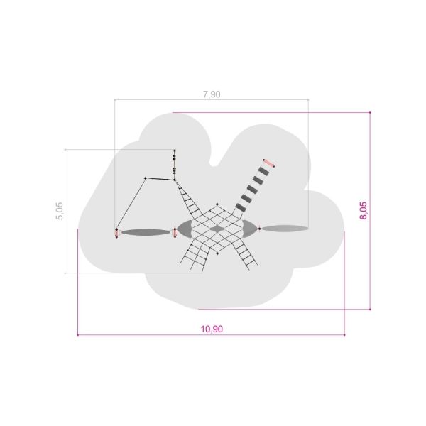 A Starfish acélszerkezet a Wonderland sorozatból egy innovatív megoldás játszóterek számára, amely a mászás és az egyensúlyozás elemeit ötvözi. A tengeri csillag alakjából ihletett egyedi szerkezet lehetőséget nyújt a gyermekek számára fizikai képességeik fejlesztésére különféle mozgásformák révén.