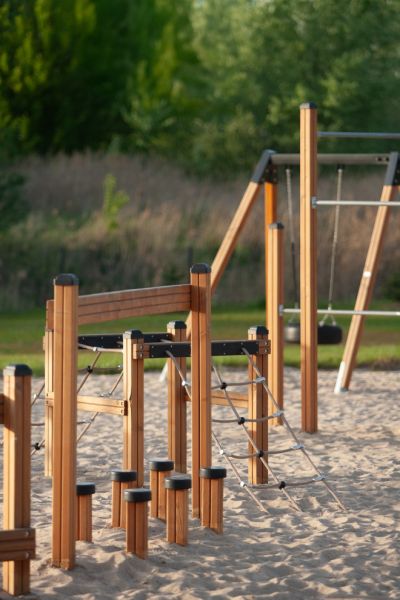 A Trim trail nemcsak vizuálisan gazdagítja a szabadidős teret, hanem mindenekelőtt különféle aktív játék lehetőségeket kínál. Terve tartalmaz elemeket, mint például mászóhálók vagy fa egyensúlyozó gerendák, amelyek elősegítik a gyerekek mozgáskoordinációját és egyensúlyát. Függetlenül attól, hogy nyilvános park vagy iskolaudvar, az akadálypálya rengeteg szórakozást biztosít a fiatal felhasználóknak.