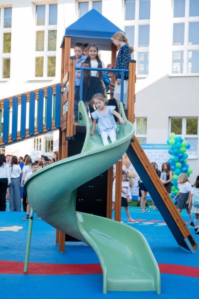 A Twister vár csúszdával egyedülálló megoldás a játszótéri kategóriában, amely számos funkciót egyesít egy szerkezetben. A változatos tevékenységekre és a képzelőerő fejlesztésére tervezett eszköz ideális helyszínt kínál a legfiatalabb felhasználók számára. Ez az elem sokoldalúságával és a rekreációs helyek tervezésének modern megközelítésével tűnik ki.