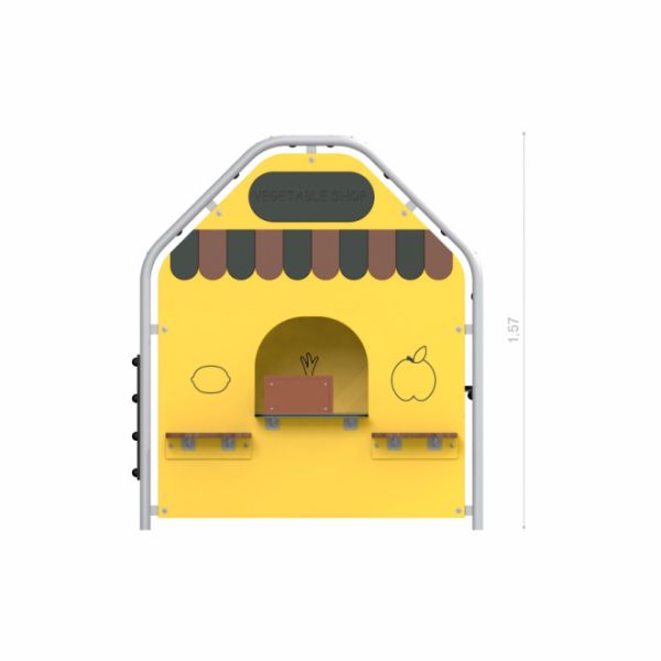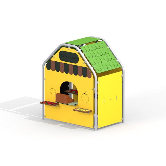 Vegetable shop egy vidám és biztonságos játékelem, amely ösztönzi a gyermekek kreativitását és szerepjátékát a szabadtéri vagy beltéri játszótereken.